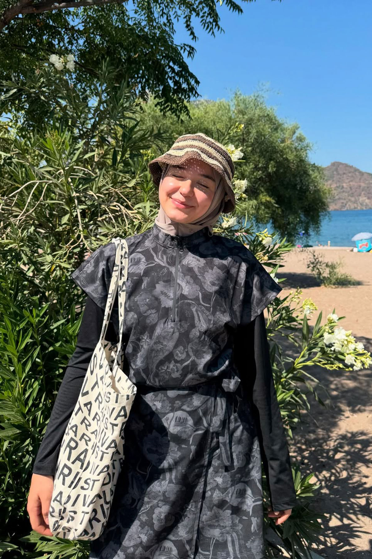 Antrasit retro tesettür mayo jile, takım olarak değil tek başına satılmaktadır.