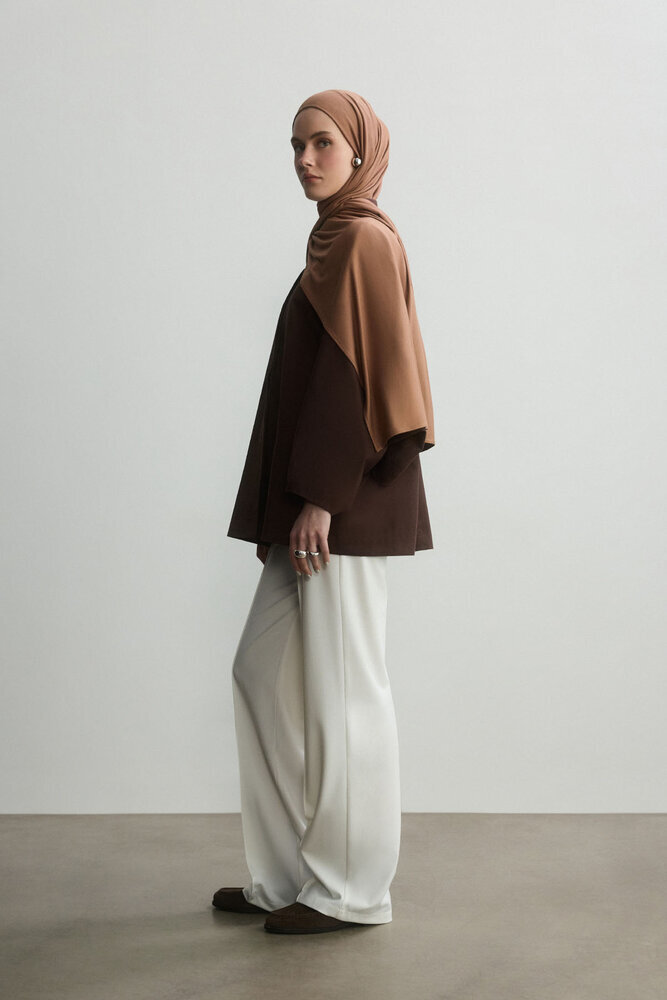 Bambu Penye Şal, bambu liflerinin doğal yumuşaklığını tenle buluşturmak için tasarlandı. İlk temas anında hissedilen ipeksi dokusu, nefes alan yapısı ve akışkanlığıyla gün boyu varlığını unutturacak kadar hafif bir konfor sunar. Özel olarak boyatılan ara tonlar, gardırobuna dingin ve zamansız bir renk dünyası eklerken her kombine zahmetsizce eşlik eder. Kenarlarında kullanılan özenli terzi dikişi, ürüne sessiz bir zarafet ve uzun ömürlü bir kalite kazandırır. Şal, bu özel deneyimi tamamlayan tasarım kutusu içinde gönderilir.