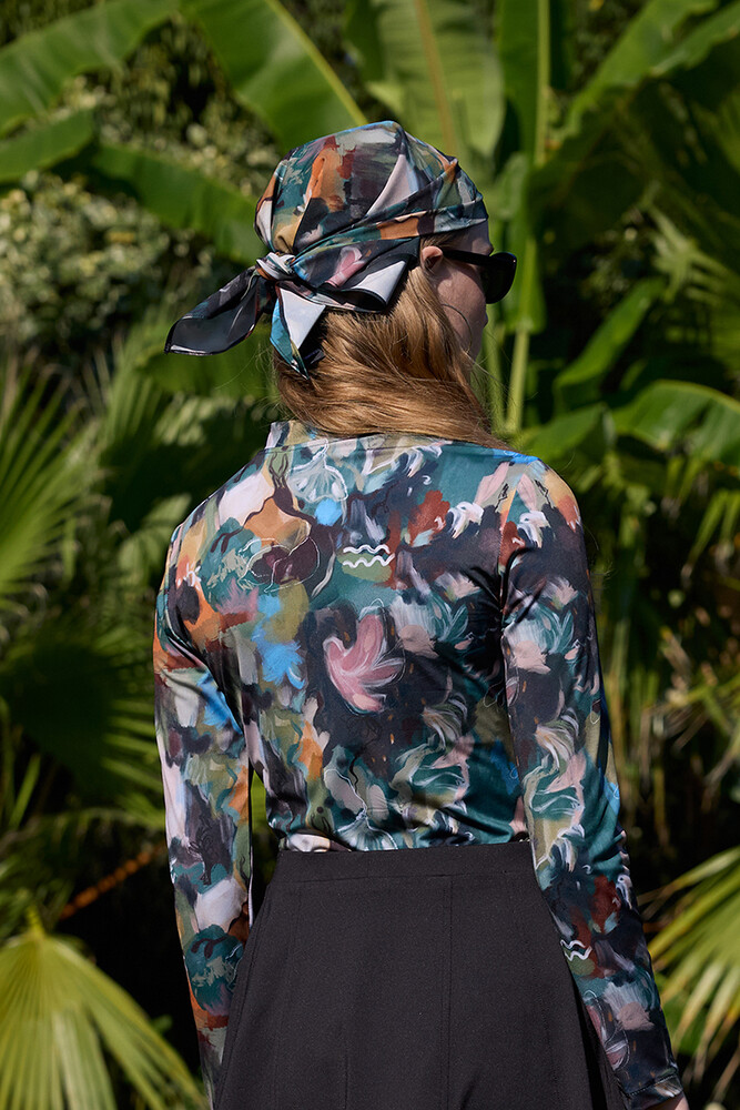 Dokuma mayo kumaşından, desenli bandana.