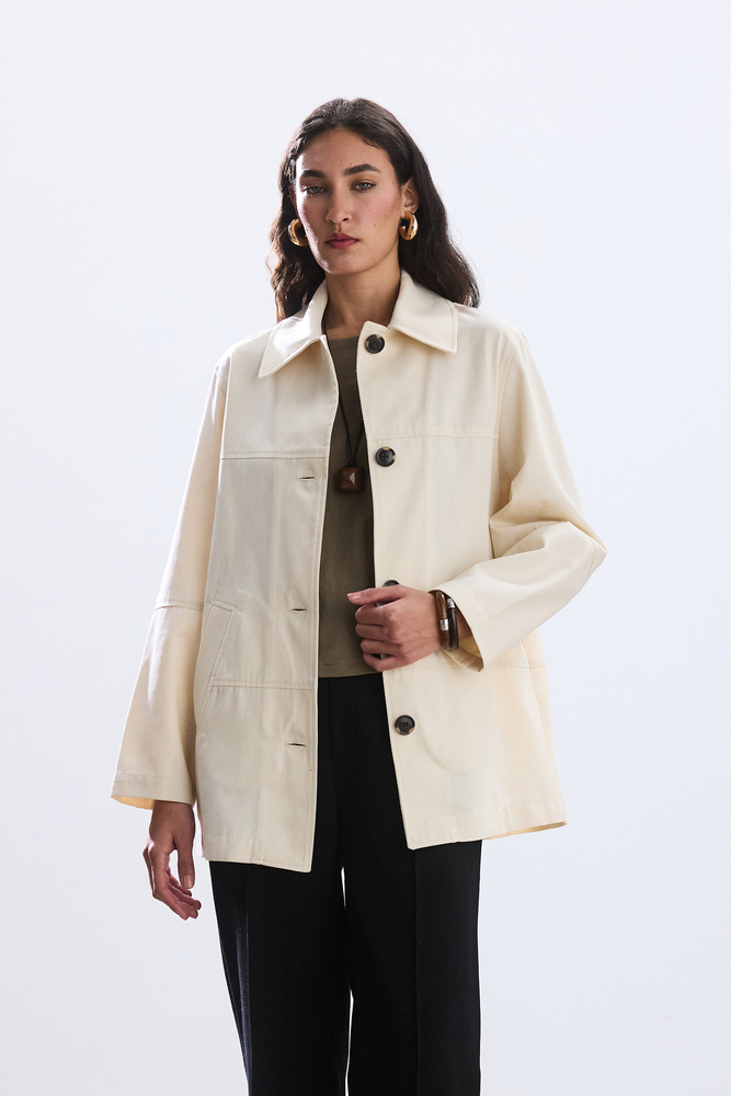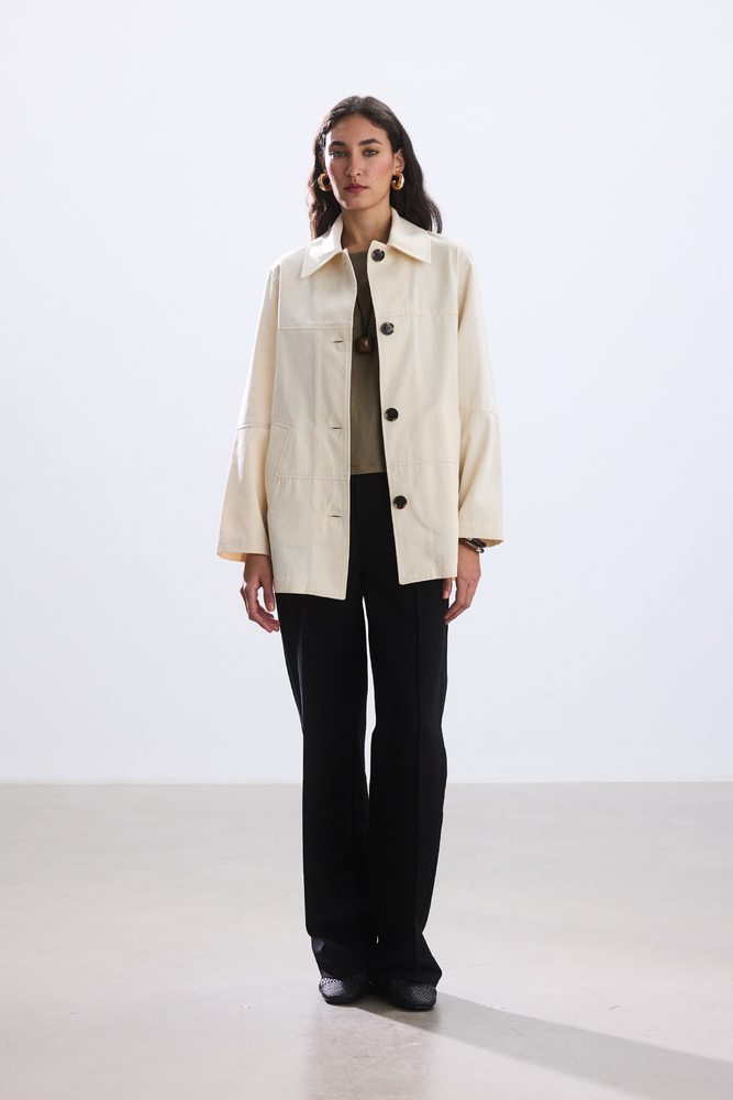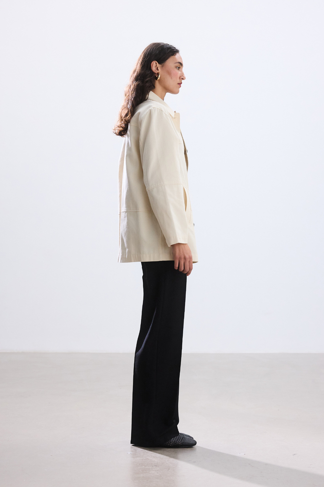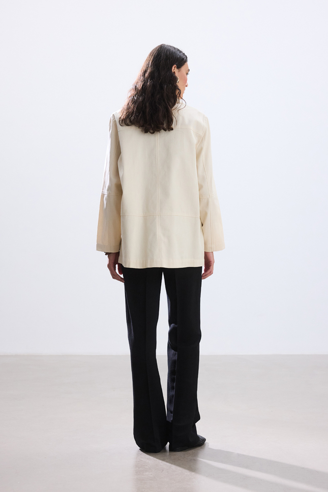 Dikiş ve cep detaylı gabardin ceket.