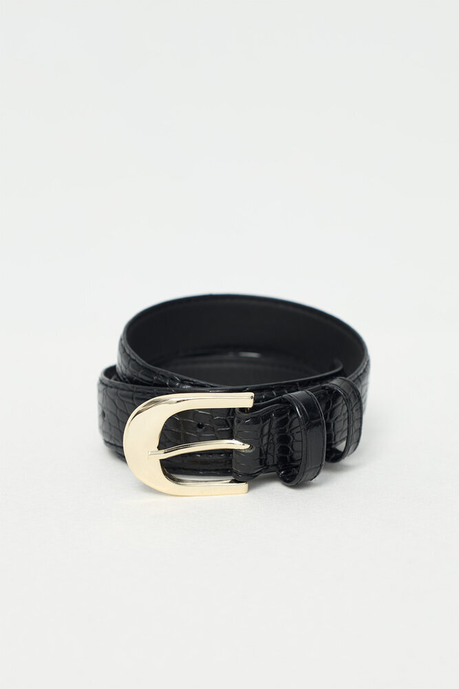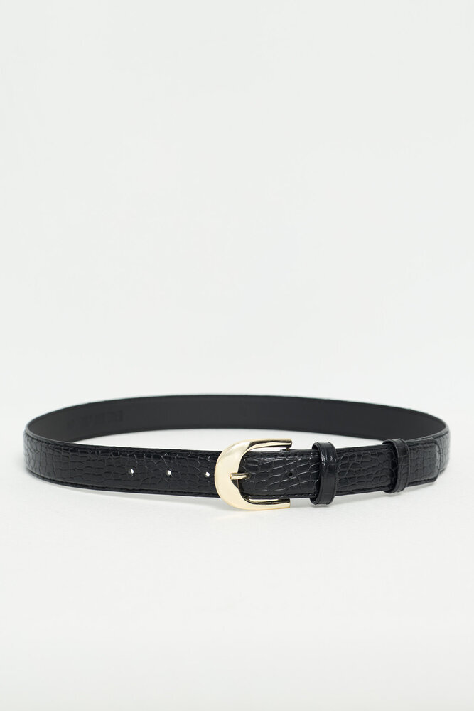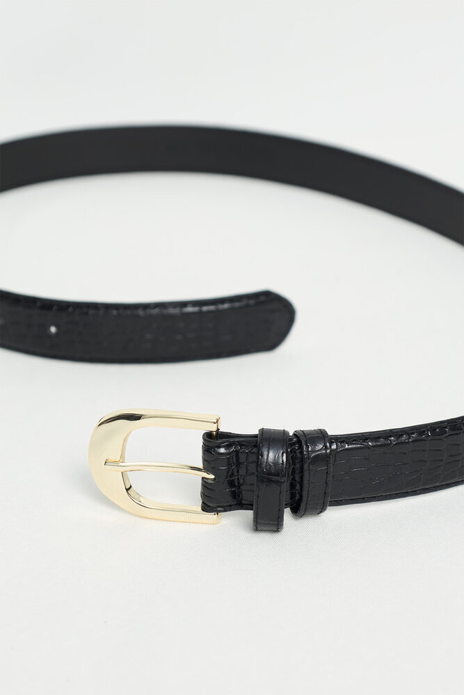 GOLD TOKA DETAYLI SİYAH KROKODİL KEMER