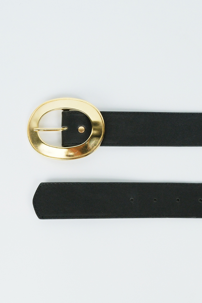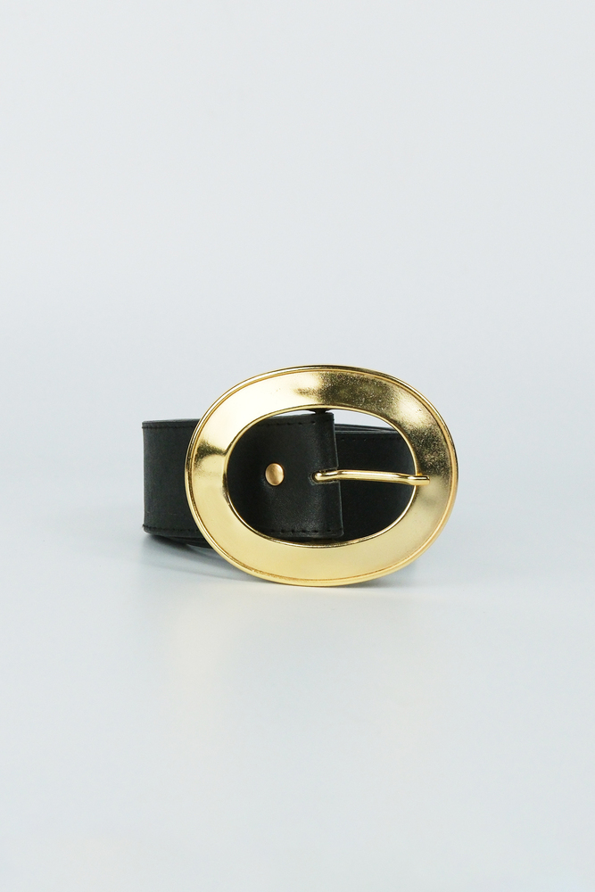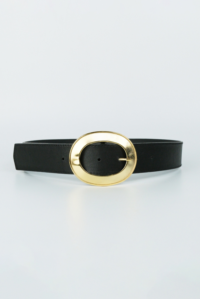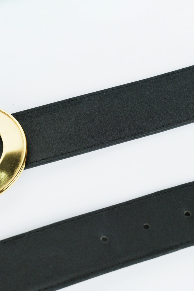 Gold oval toka detaylı suni deri kemer.