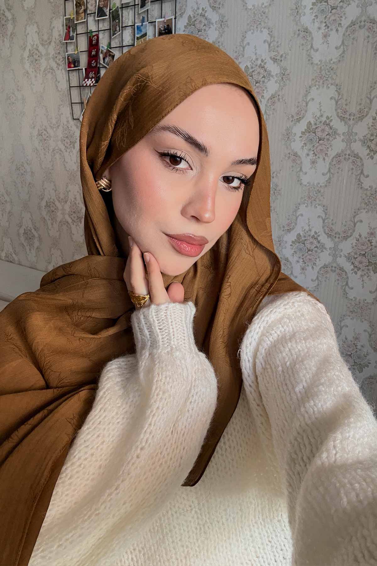 Jakarlı kumaştan kendinden desenli, yumuşak dokulu şal.