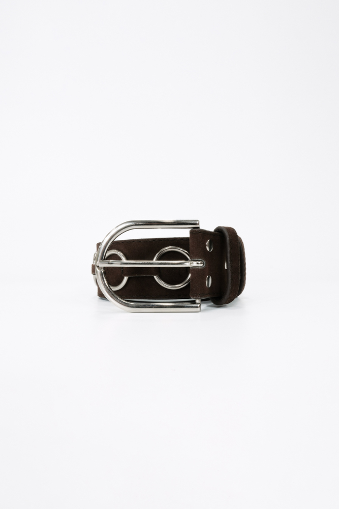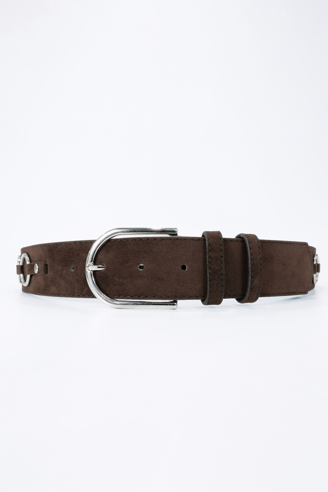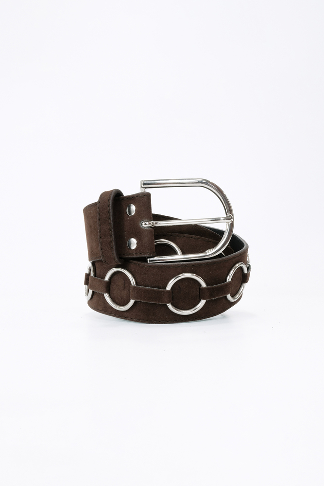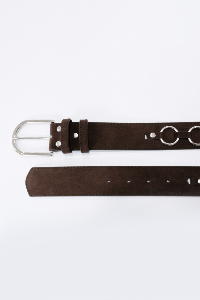 KAHVERENGİ GÜMÜŞ HALKA DETAYLI SÜET KEMER