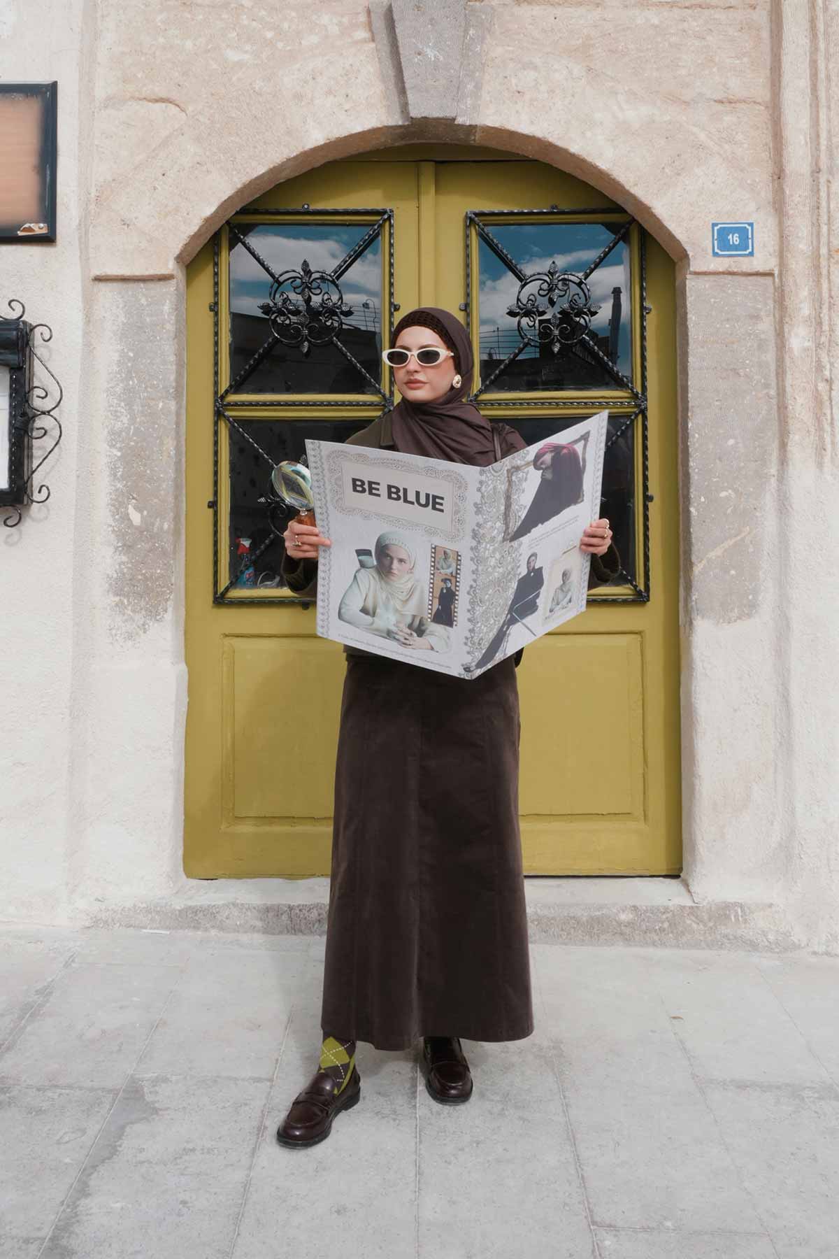 KAHVERENGİ KADİFE PARÇALI ETEK
