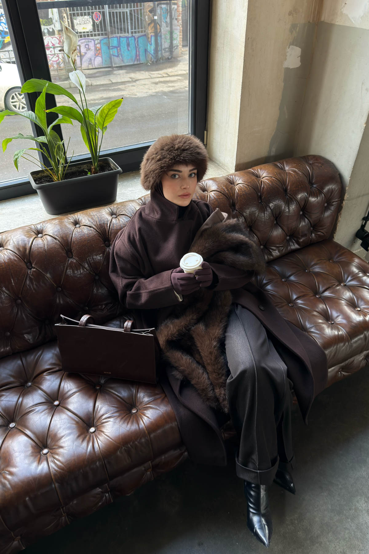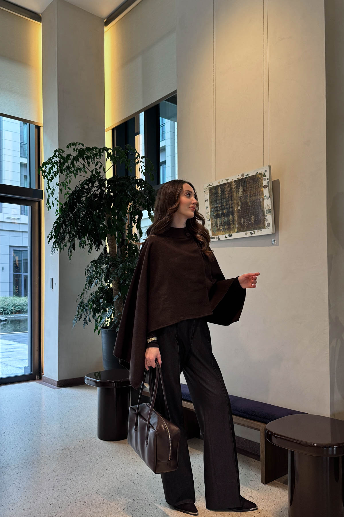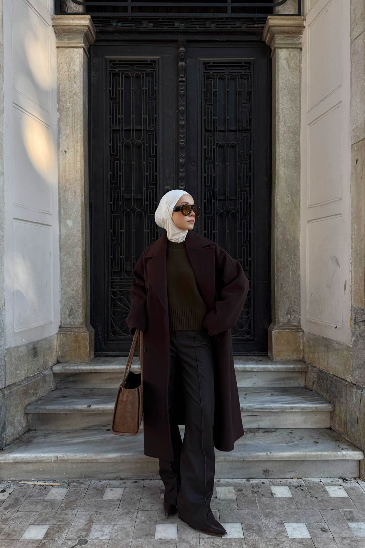 KAHVERENGİ NERVÜR DETAYLI STRAIGHT DENIM PANTOLON