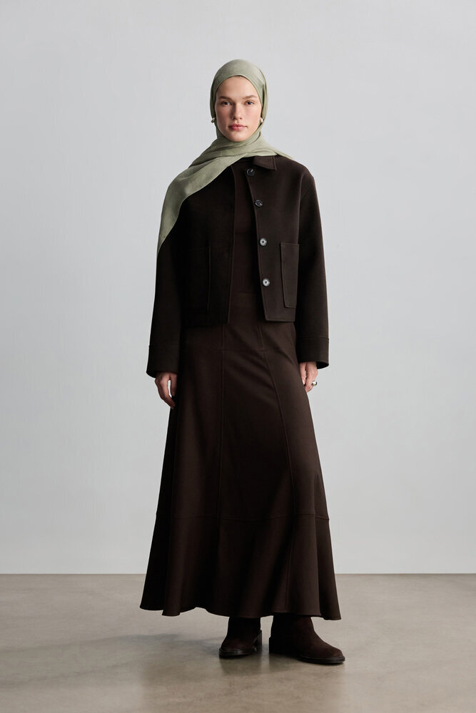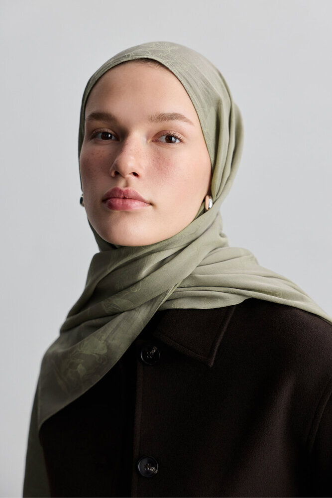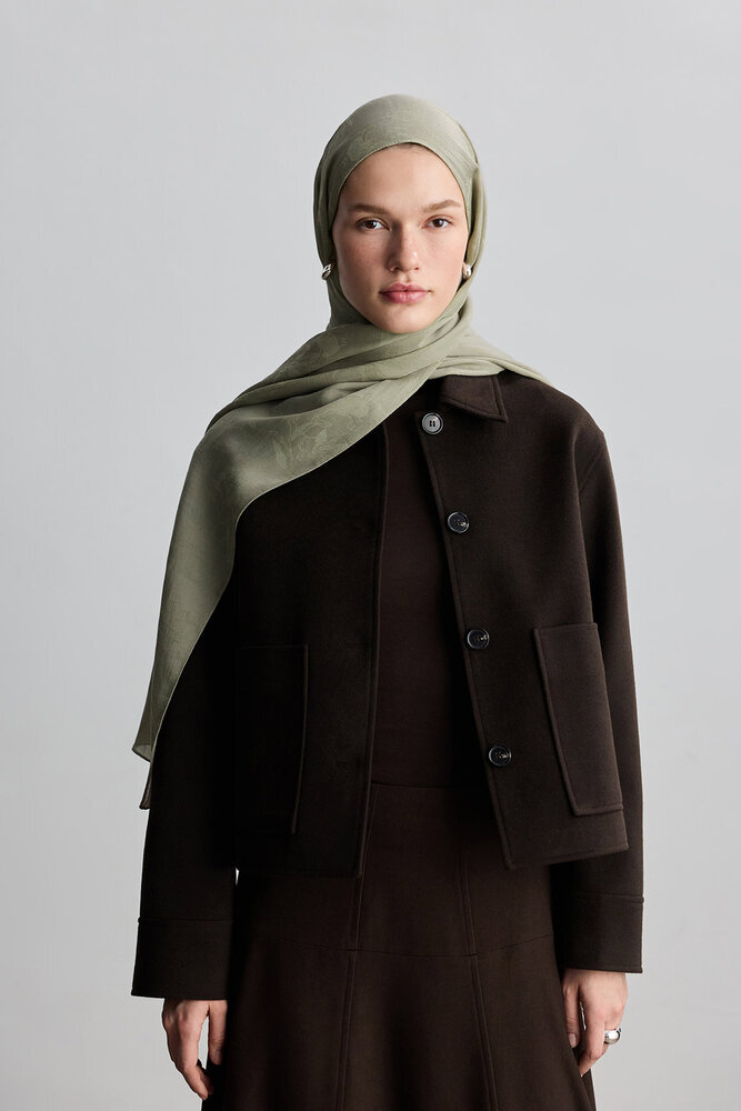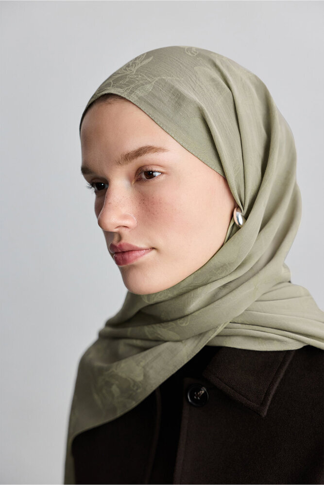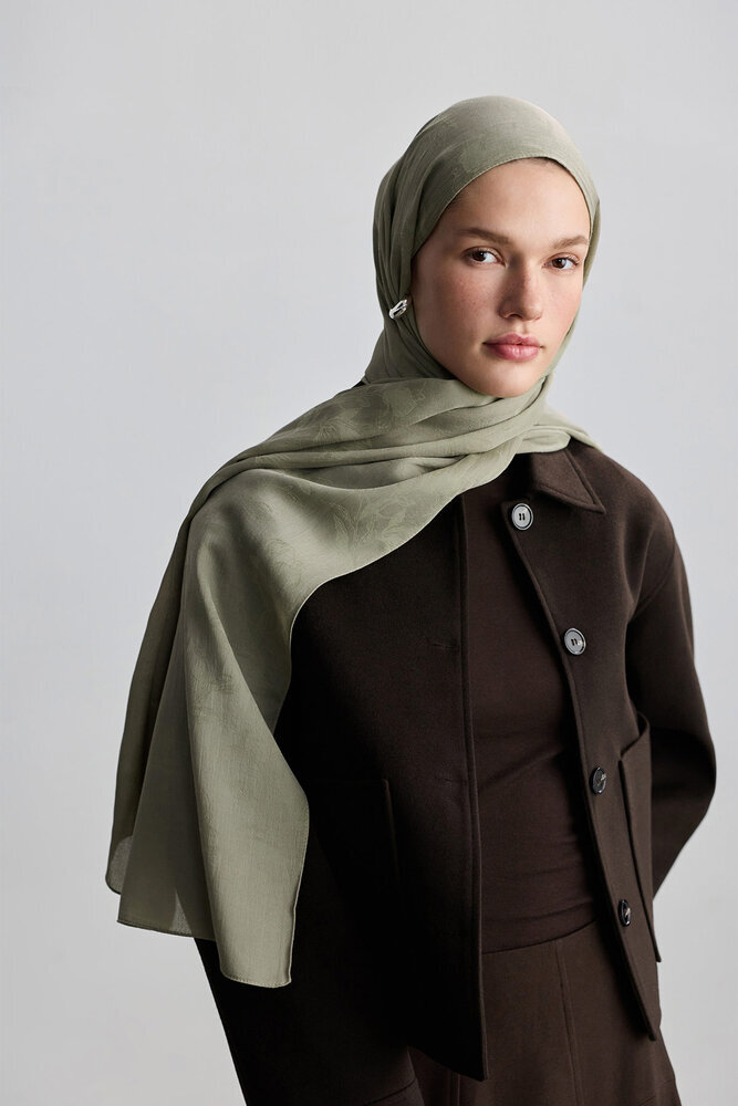 Jakarlı kumaştan kendinden desenli, yumuşak dokulu şal.