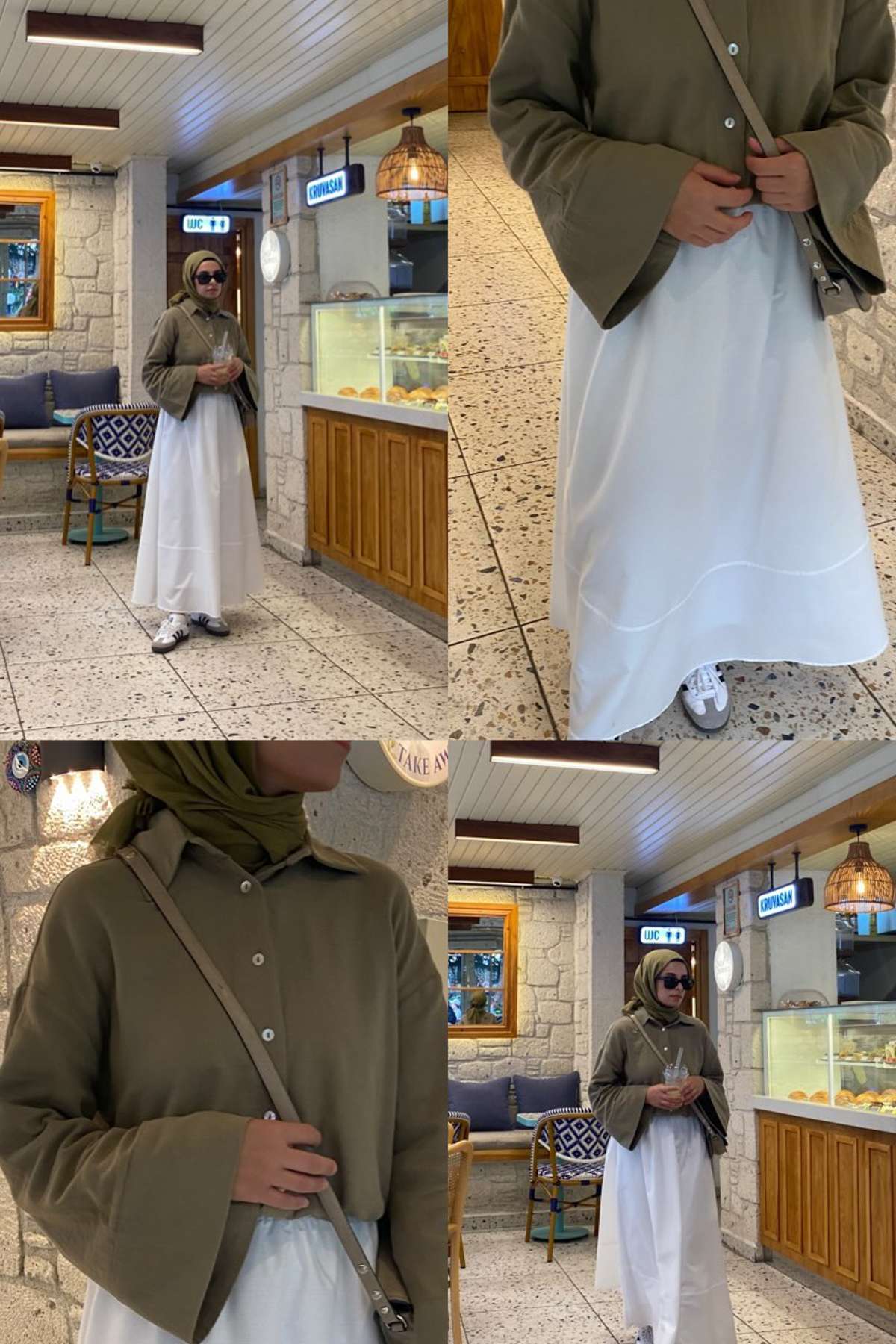 KUM KİMONO KOLLU MÜSLİN GÖMLEK