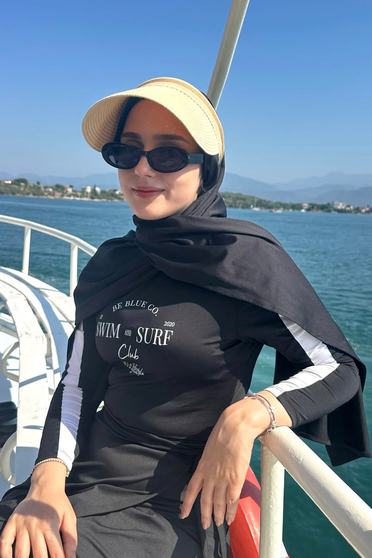 Siyah baskılı surf mayo, takım olarak değil tek başına satılmaktadır.