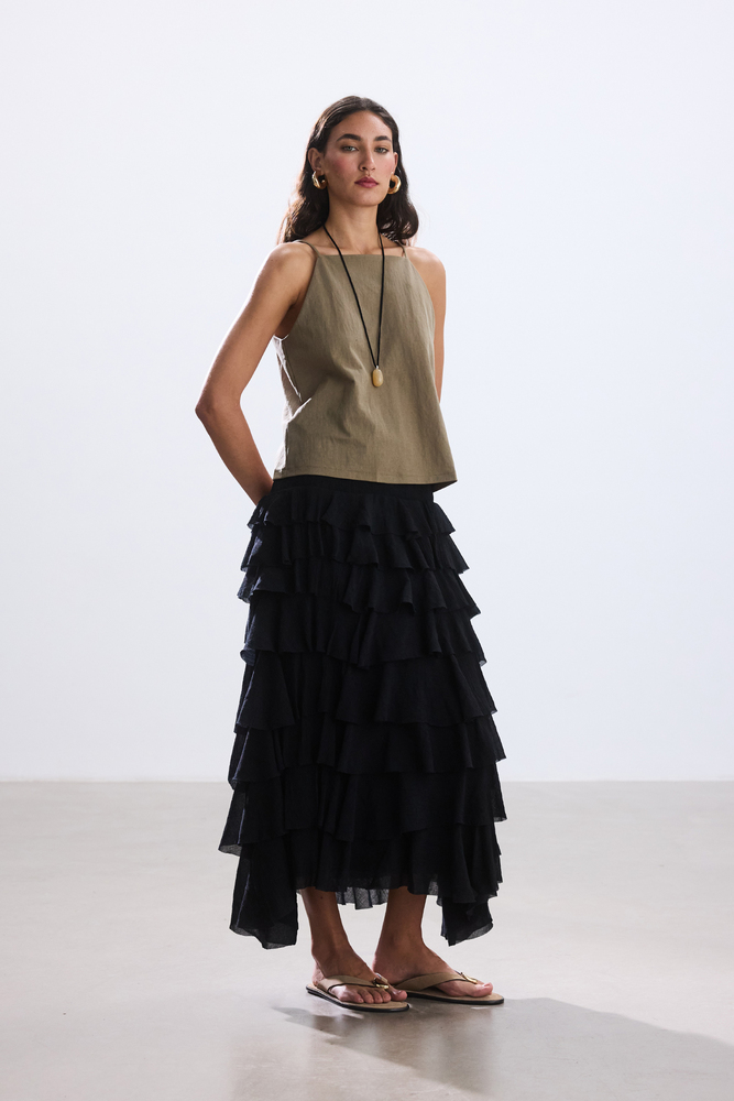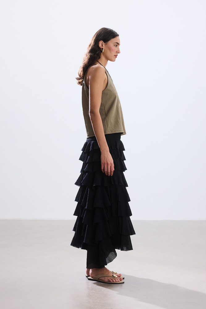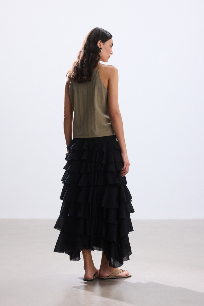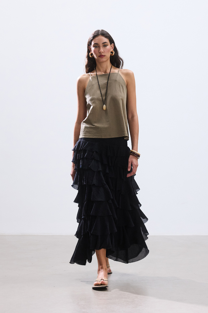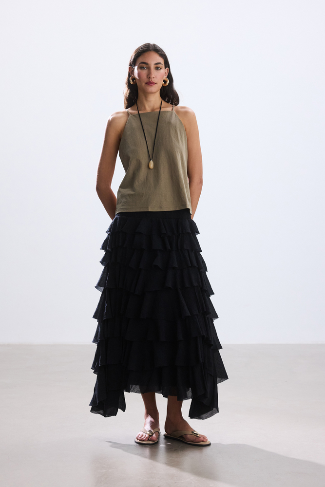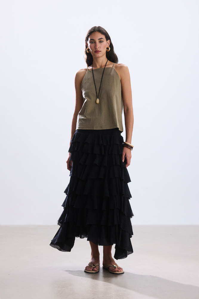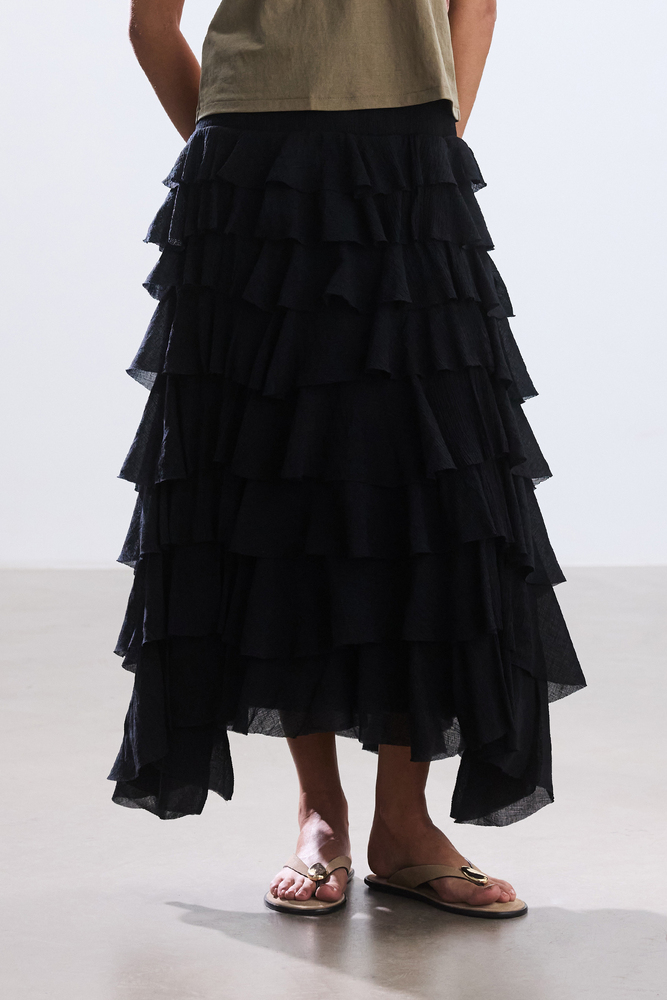 SİYAH KATLI ROMANTİK ETEK