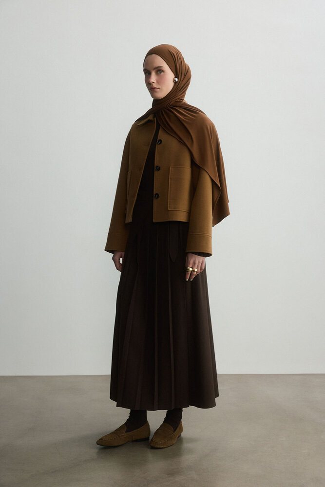 Bambu Penye Şal, bambu liflerinin doğal yumuşaklığını tenle buluşturmak için tasarlandı. İlk temas anında hissedilen ipeksi dokusu, nefes alan yapısı ve akışkanlığıyla gün boyu varlığını unutturacak kadar hafif bir konfor sunar. Özel olarak boyatılan ara tonlar, gardırobuna dingin ve zamansız bir renk dünyası eklerken her kombine zahmetsizce eşlik eder. Kenarlarında kullanılan özenli terzi dikişi, ürüne sessiz bir zarafet ve uzun ömürlü bir kalite kazandırır. Şal, bu özel deneyimi tamamlayan tasarım kutusu içinde gönderilir.